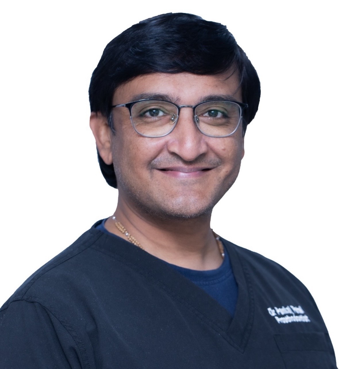 With over 18+years of experience in dentistry, Dr. Pankaj Patel is a renowned Prosthodontist with specialisation in dental implants, crowns and bridges, complete and partial dentures, and prosthetic rehabilitation for post-operative cancer patients. He served as the Head of the Department of Prosthodontics at Karnavati School of Dentistry until 2019 and is currently the HOD at Goenka Dental College. Dr. Patel is known for his clinical precision and dedication to restoring confident smiles.